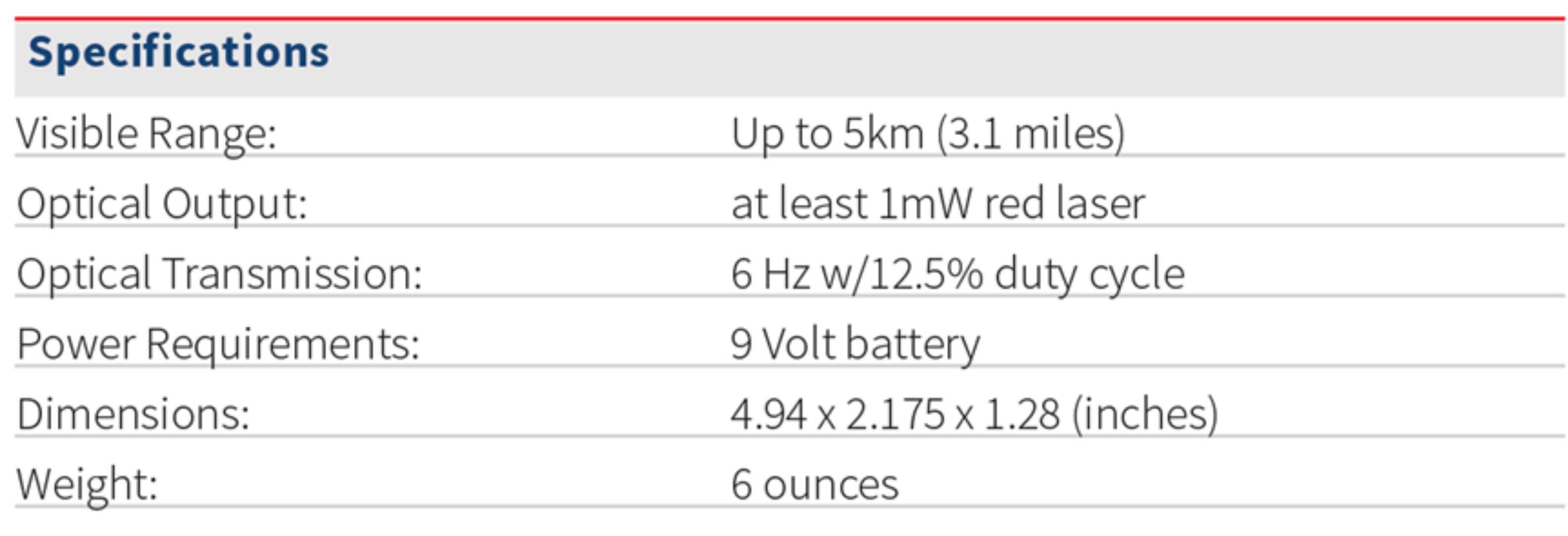 Typical battery life in Constant mode is 15 hours, and the short 12.5% duty cycle in Flashing mode extends the battery life to 120 hours of continuous use.