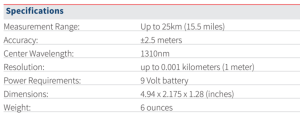 The Fiberlink 6658 Optical Length Tester uses a 1310nm infrared laser that can measure fiber links of up to 25 kilometers, is accurate to within ±2.5 meters.