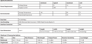 In addition, fiber optic cable offers much longer transmission distances than copper wiring. Traditional E3 coax cabling is limited to a maximum distance of 1100ft (335m), but multimode optics on the unit can extend the distance to 2km, while singlemode optics can further extend the distance to 20km. A typical link consists of two FOI-DSE3, one at each end of the network, with a duplex fiber optic cable between them.